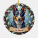 A beautiful, ultra-detailed Christmas design featuring a realistic portrait of the breed centered within a soft, festive winter frame. This elegant design includes pine branches, red berries, and snowflakes against a snowy backdrop, illuminated by warm holiday lighting. The balanced, round composition includes clear space below the dog for customization.