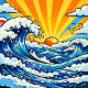 Personalized birthday party banner with a cute nautical pop art oceanic theme with a cute blue, red and yellow sailboat. Add child's name and age in the personalize area.