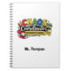 Featuring colorful school-themed graphics like a yellow bus, apple, and school supplies, this notebook captures the energy of teaching.