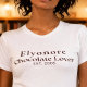 Personalized chocolate lover t-shirt featuring your name and special year in dark chocolate brown. A clean, elegant typography design perfect for true chocolate lovers. Makes a thoughtful personalized gift for women who love sweet treats and minimalist style.