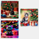 Whimsical Christmas Greetings Kittens. Three kitten designed Christmas Greetings. Customizable Christmas Cat Greeting Stickers. Christmas Kittens with Christmas presents, Christmas trees and Christmas Greetings.