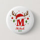 Create a one of a kind holiday keepsake with this festive personalized monogram. This design features the letter 'M' topped with a cute Santa hat and reindeer antlers, ready for your custom text. Click 'Personalize' to easily add a name and the year. Perfect for matching family shirts, custom stocking tags, or a special Christmas gift.