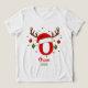 Create a one of a kind holiday keepsake with this festive personalized monogram. This design features the letter 'O' topped with a cute Santa hat and reindeer antlers, ready for your custom text. Click 'Personalize' to easily add a name and the year. Perfect for matching family shirts, custom stocking tags, or a special Christmas gift.