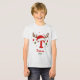 Create a one of a kind holiday keepsake with this festive personalized monogram. This design features the letter 'T' topped with a cute Santa hat and reindeer antlers, ready for your custom text. Click 'Personalize' to easily add a name and the year. Perfect for matching family shirts, custom stocking tags, or a special Christmas gift.