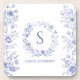 Introducing our Personalized Classic Blue Flowers Floral Pattern beverage coaster. Personalize it with your initial for unique touch. Suitable as gift for vintage art lovers.