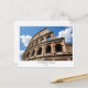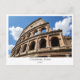 This postcard features an upward, dramatic view of the Colosseum in Rome, capturing its layered arches, weathered stone, and monumental scale against a bright blue sky. The angle emphasizes the structure’s height and engineering brilliance, while the warm tones of the ancient stone contrast beautifully with the clouds above. It’s a bold, iconic portrait of one of Italy’s most enduring historic landmarks.