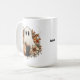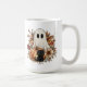 Embrace the fun side of spooky season with this adorable personalized Halloween mug. The cute illustration features a whimsical ghost, a tiny black cat, and a harvest pumpkin surrounded by beautiful autumn florals. Easily customize this mug with a custom name or message to create a unique and thoughtful gift for Halloween, a fall birthday, or a fun addition to your seasonal decor. This mug is a perfect, customizable companion for your fall drinks.