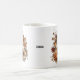 Embrace the fun side of spooky season with this adorable personalized Halloween mug. The cute illustration features a whimsical ghost, a tiny black cat, and a harvest pumpkin surrounded by beautiful autumn florals. Easily customize this mug with a custom name or message to create a unique and thoughtful gift for Halloween, a fall birthday, or a fun addition to your seasonal decor. This mug is a perfect, customizable companion for your fall drinks.