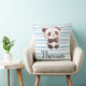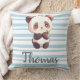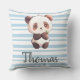 Bring a touch of cozy charm to your child's room with this personalized panda throw pillow. Featuring a sweet chibi-style panda, this design uses a clean background of soft blue and white horizontal stripes that perfectly complements modern nursery and bedroom decor.