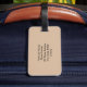 This luggage tag features a shadow-style monogram and hot pink, light pink, and beige tones. The color combination creates a soft, preppy look while keeping the tag easy to spot on bags. It includes space for contact information and an adjustable strap for attaching to luggage.