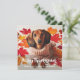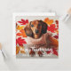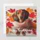 Cute Wiener Dog thanksgiving card featuring a cute dachshund in a knitted sweater surrounded by autumn leaves