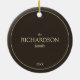 Bring warmth and wonder to your holiday tree with this golden winter wonderland Christmas ornament. Featuring a stunning 3D-look design, this ornament captures a magical snowy scene - a cheerful snowman surrounded by glistening trees, twinkling stars, and intricate detailing. The dimensional design gives the illusion of depth and light, making it a standout piece that shimmers beautifully among your holiday lights. The back of the ornament offers a refined personal touch - elegantly customized with your family name and year in classic gold typography on a deep, rich background. A perfect balance of elegance and festive charm, this keepsake is sure to become a treasured part of your Christmas tradition.