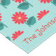 Add a cheerful floral touch to your table with this personalized daisy pattern table runner, featuring bright red flowers on a soft aqua background. Perfect for everyday dining, spring gatherings, birthday parties, brunches, tea parties, bridal showers, or cottage-style décor.
