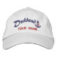 A dynamic personalized Deckhand cap in nautical red, white, and blue style embroidered hat sure to make an impression on, or off the boat. Make this lifesaver anchor design embroidery as unique as you are with your name, your location, or your boat's name.