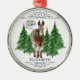 Celebrate the season with this Personalized Donkey Christmas Ornament Keepsake. Featuring a charming watercolor pine forest topped with a golden star and “Merry Christmas” in elegant script, this design captures the warmth and beauty of the holidays. In the foreground, a sweet donkey adorned with a pretty Christmas wreath, framed by delicate scrollwork for a timeless touch.