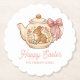 Celebrate Easter with this adorable personalized paper coaster featuring a charming watercolor design. A sweet brown bunny peeks out from a beautifully decorated teapot adorned with delicate flowers, vibrant Easter eggs, and a lovely pink bow. The 'Happy Easter' message is complemented by your customizable family name. Perfect for Easter brunches, family gatherings, or spring tea parties, this plate adds a touch of whimsy and joy to any celebration.