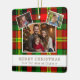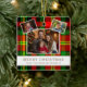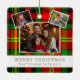 Personalized Family 3 Photo Green Plaid Christmas Keramikornament
