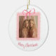 "Add a touch of elegance and warmth to your holiday décor with this beautiful Personalized Merry Christmas Ornament. This charming keepsake features your family photo centered on a soft pink background, creating a sweet and modern holiday look. Beneath the picture, a delicate pink bow adds a festive finishing touch, while “Merry Christmas” is elegantly displayed below — making it the perfect blend of personalization and holiday cheer. This ornament is a meaningful way to celebrate family moments and makes a thoughtful gift for loved ones. Whether you hang it on your tree, give it as a stocking stuffer, or use it as a memorable keepsake, it’s sure to be treasured for years to come."