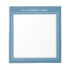 Personalized family stationery in modern, einfach with dot-dash border in bluejay and white.
