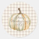Personalized Family Thanksgiving Neutral Gingham Runder Aufkleber