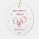 Featuring two elegant doves carrying intertwined wedding rings — a classic symbol of eternal love and unity — this ornament captures the beauty and peace that comes with beginning a new chapter together. The minimalist red design on crisp white ceramic gives it a modern yet romantic feel, perfect for any Christmas tree.
