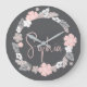 Personalized Floral Name Pink Große Wanduhr