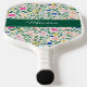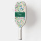 Play with confidence and style using this personalized floral pickleball paddle. Featuring a vibrant botanical pattern of pink, blue, and yellow blooms set against lush greenery, this paddle brings a touch of cheerful, preppy elegance to the court. The deep green name band across the center adds a clean, tailored look while showcasing a personalized name in refined script for a custom finish. Perfect for casual games, social matches, or gifting, this paddle blends eye-catching design with practical playability, making it a stylish standout for pickleball lovers of all levels.