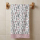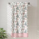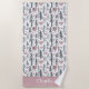 This beach towel design is complete with a seamless pattern of green trees and pink hearts set against a white background. There is a place to add your name at the bottom of the towel.