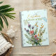 Flower gardening notebook for a woman, personalized with her name on the front. Light blue cover with a bouquet of wildflowers over a background of butterflies and bees. Use the lined pages inside to keep track of purchases for the yard, planting times, fertilizer dates, blooming, and propagation - as examples.