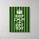 Personalized Green Stripes Keep Calm Your Text Leinwanddruck