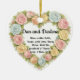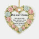 Celebrate love, faith, and meaningful moments with this elegant heart-shaped ornament, beautifully framed by a soft pastel floral border. Designed to be fully personalized, this keepsake features the names of a couple along with a favorite Bible verse centered on love, making it a timeless expression of devotion and belief. This ornament offers a modern yet delicate look that catches the light beautifully. Whether displayed on a Christmas tree, hung in a window, or gifted as a decorative keepsake, it serves as a daily reminder of love rooted in faith. Perfect for weddings, anniversaries, engagements, Valentine’s Day, or Christian gifts, this personalized ornament is a heartfelt way to honor a love story inspired by God’s Word. Customers should change "Dan and Darlene" to the couple's names. They can also change the Bible verse from 1 Corinthians 13:13 to a verse that has special meaning for them.