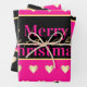 This Personalized design features three vibrant Hot Pink and black designs with elegant Gold Heart accents. A stylish stripe has the message "Merry Christmas" and space for you to add your name, perfect for your custom hot pink and black Christmas gift wrap and Holiday theme.