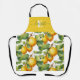 Italian-inspired cooking apron featuring a bold yellow lemons pattern reminiscent of classic italian kitchen. The top panel showcases your monogram and your name, handwritten-style font. Perfect for anyone who loves traditional Italian cooking, family gatherings, and homemade meals, this apron combines practical kitchen wear with vintage Mediterranean charm. A delightful gift for grandmothers, home chefs, or anyone wanting to bring a taste of Italy into their kitchen.