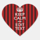 Personalized Keep Calm Your Text on Red Stripes Herz-Aufkleber