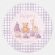 Celebrate your little one’s big day with this adorable lavender gingham round sticker, featuring charming watercolor baby toys — a teddy bear, bunny, giraffe, and building blocks. Perfect for sealing invitations, decorating party favors, or adding a custom touch to gift bags. Personalize it with your child’s name for a sweet, coordinated look that matches your pastel 1st birthday theme.