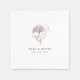 The soft lavender floral illustration creates a timeless and sophisticated aesthetic that complements lavender, purple, and romantic garden wedding themes. Perfect for cocktail hour, bar stations, dessert tables, or reception place settings, these personalized wedding napkins add a subtle yet memorable detail to your celebration décor.