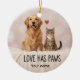 Valentine's Day is not just for us—it's for the loyal companions who have stayed by our side through everything. Celebrate that unconditional love with this beautiful 'Love Has Paws' ornament. Pets may speak a different language, but they surely feel the love we give them. Personalize this special keepsake with your pet's name to show them they are a cherished part of the family. Crafted from premium ceramic, this ornament is the perfect way to honor your pet's presence in your life this Valentine's Day.