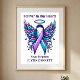 Symbolism: Features a stunning illustration of angel wings surrounding the signature Purple and Teal awareness ribbon, accented with delicate butterflies and a halo.