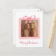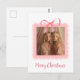 "Send warm holiday wishes with this Personalized Merry Christmas Family Photo Postcard. Featuring your own cherished family photo alongside a graceful pink bow and festive “Merry Christmas” greeting, this postcard combines heartfelt sentiment with elegant design. Perfect for sharing joy with loved ones near and far, it’s a timeless way to make your Christmas greetings truly personal."