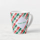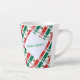 Small latte mug with a tiled Mexican flag pattern covering the full printable area. One side features a white fractal squiggly‑square patch with your custom name in green text. Perfect for Mexico family reunions, Cinco de Mayo, Mexican Independence Day Sept 16, cultural pride, and everyday use.