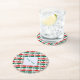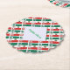 Paper party coaster with a tiled Mexican flag pattern covering the full printable area. One side features a white fractal squiggly‑square patch with your custom name in green text. Perfect for Mexico family reunions, Cinco de Mayo, Mexican Independence Day Sept 16, cultural pride, and party celebrations.