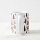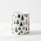 Celebrate a Pink Christmas with this personalized photo mug featuring your favorite family moments inside a charming blush pink gift box design. The background showcases a modern Scandinavian tree pattern in muted sage, black, and pink tones — perfect for cozy, contemporary holiday style.