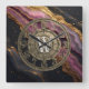 Personalized Monogram Agate Pink Rustic Metal Luxe Quadratische Wanduhr