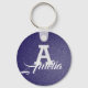 It's A Blue Key chain With a Personalized Name and Monogram in a White color