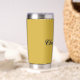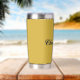 This personalized metallic gold insulated tumbler combines style and functionality for everyday use. Customizable with any name, it keeps beverages hot or cold for hours while providing a sleek, modern look. Perfect for work, school, travel, or gifts, this durable tumbler blends convenience with personalized elegance.