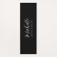 Elevate your yoga or workout sessions with this minimal and modern personalized monogram yoga mat featuring a custom name in a blend of script and modern fonts. Whether you're at the studio, gym or at home, this mat adds a stylish and personal vibe to every session and makes a great gift for yoga lovers. Simple to customize by adding your first and last name, black background with white and grey text which can be changed if preferred.