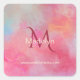 Personalized Name + Monogram Pink Watercolor Ink Quadratischer Aufkleber