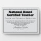 Recognize an exceptional professional achievement with this National Board Certified Teacher (NBCT) personalized plaque, customizable with the teacher’s name and certification specialization. Designed in a classic, certificate-style layout, this plaque offers a formal and timeless way to honor the dedication, expertise, and reflective practice required to earn National Board Certification.