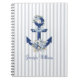 Personalized Nautical Floral Watercolor Navy Stripes Notebook