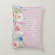 Add a touch of sweet charm to any room with this adorable accent pillow featuring a delicate floral arrangement of roses in soft pinks and blues. The background boasts charming pink and blue vertical stripes, creating a gentle and inviting aesthetic. Personalize it with a name of your choice, making it a unique and cherished addition to a nursery, bedroom, or living space. This pillow is perfect for adding a pop of color and a personalized touch to your home decor.